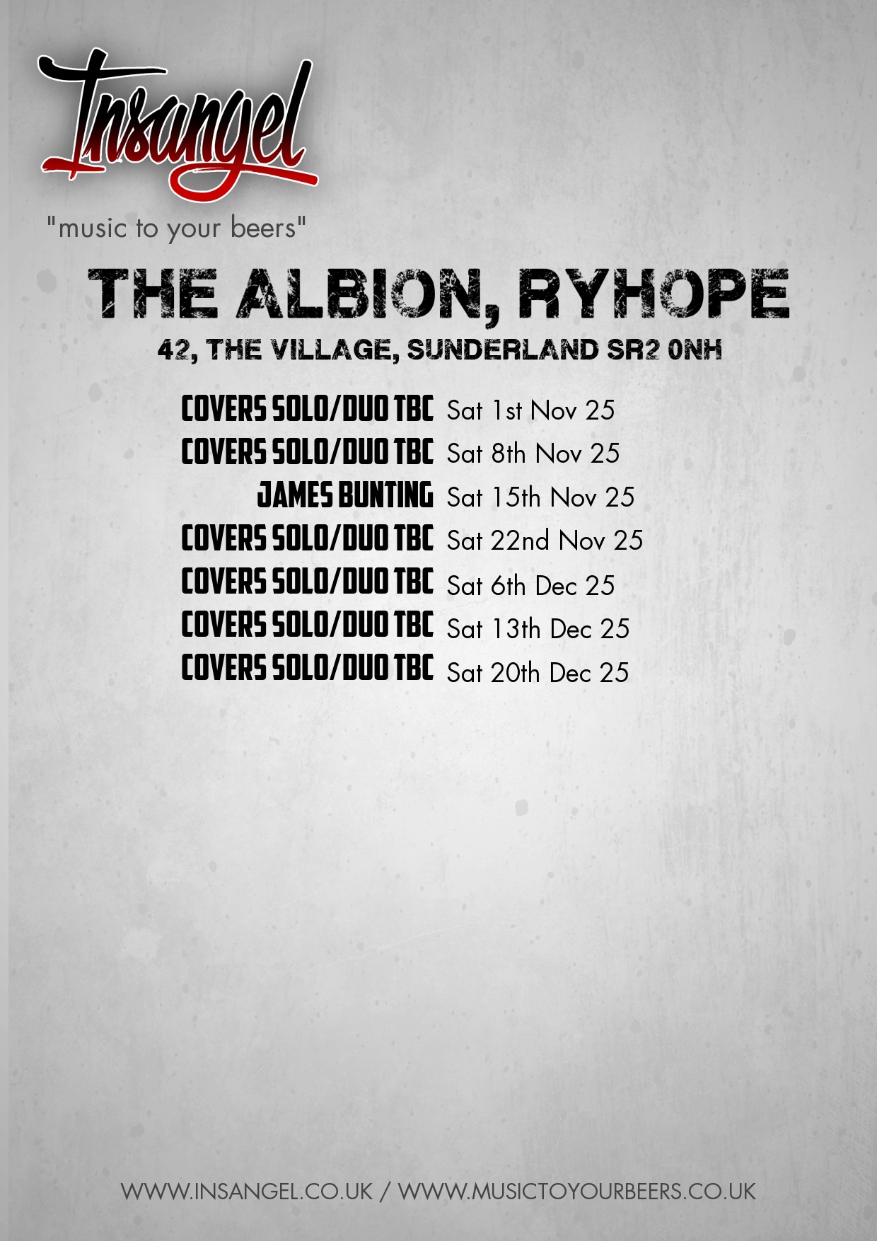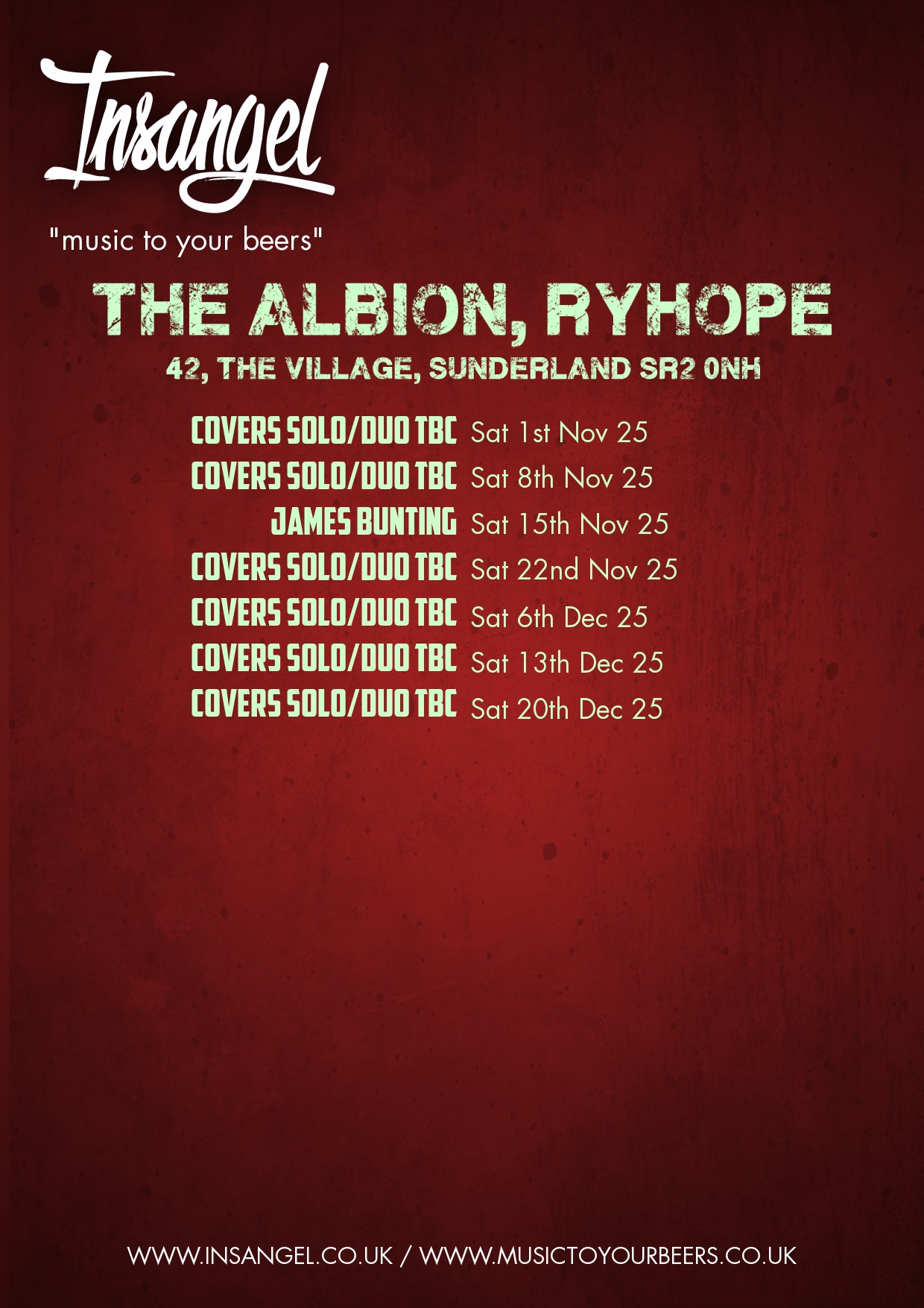 Saturday 6th December 2025 - Covers Solo/Duo TBC [Red Poster] [White Poster]