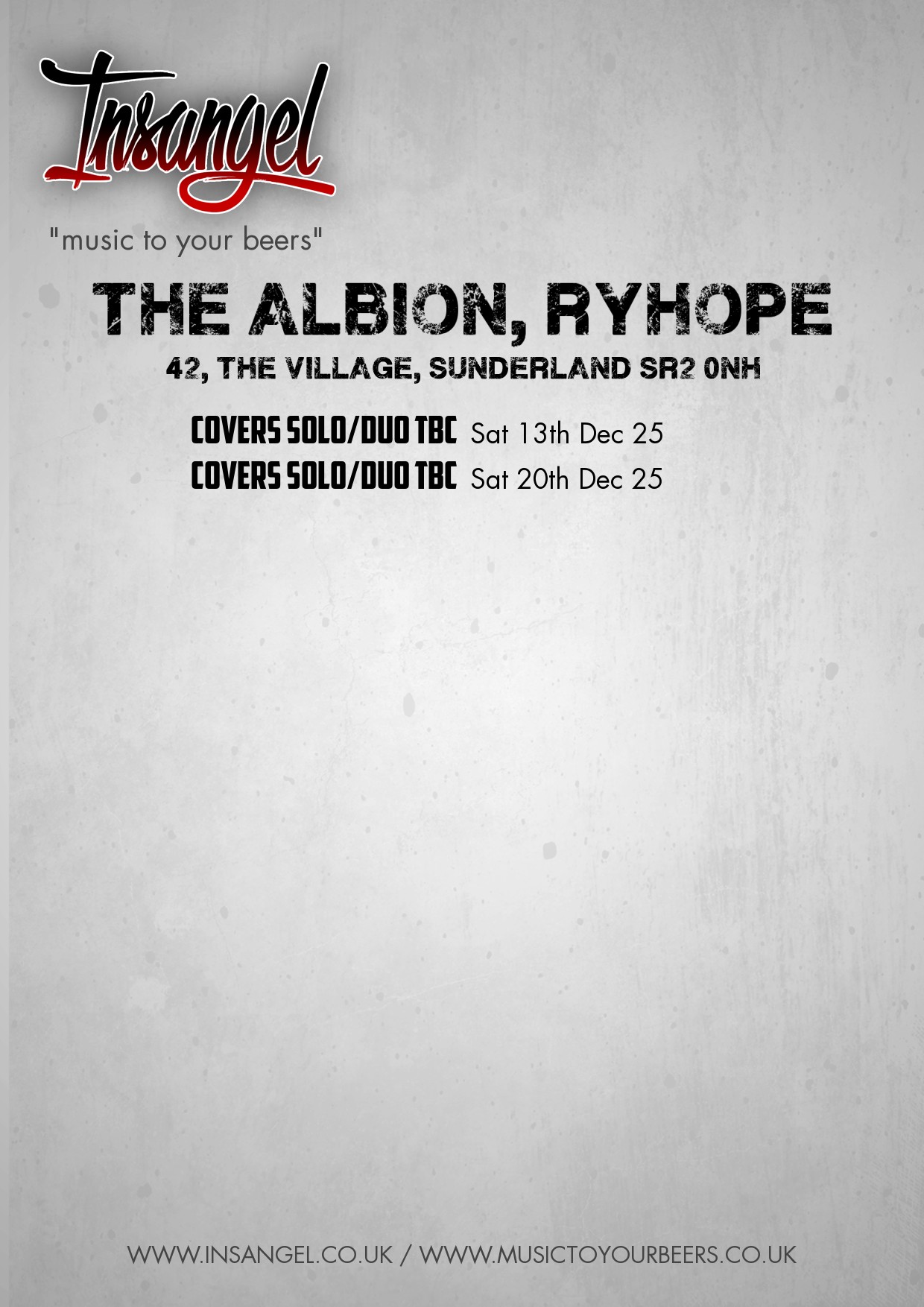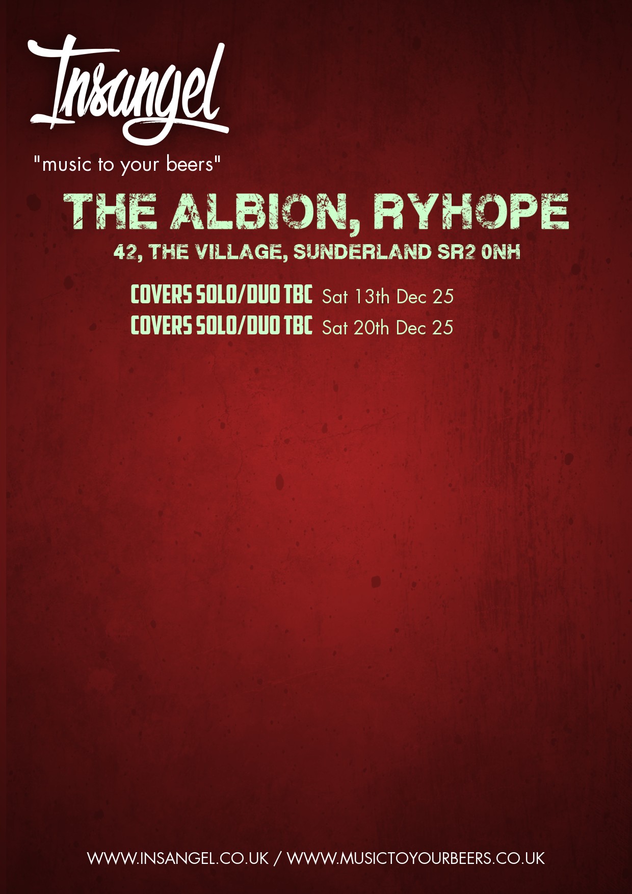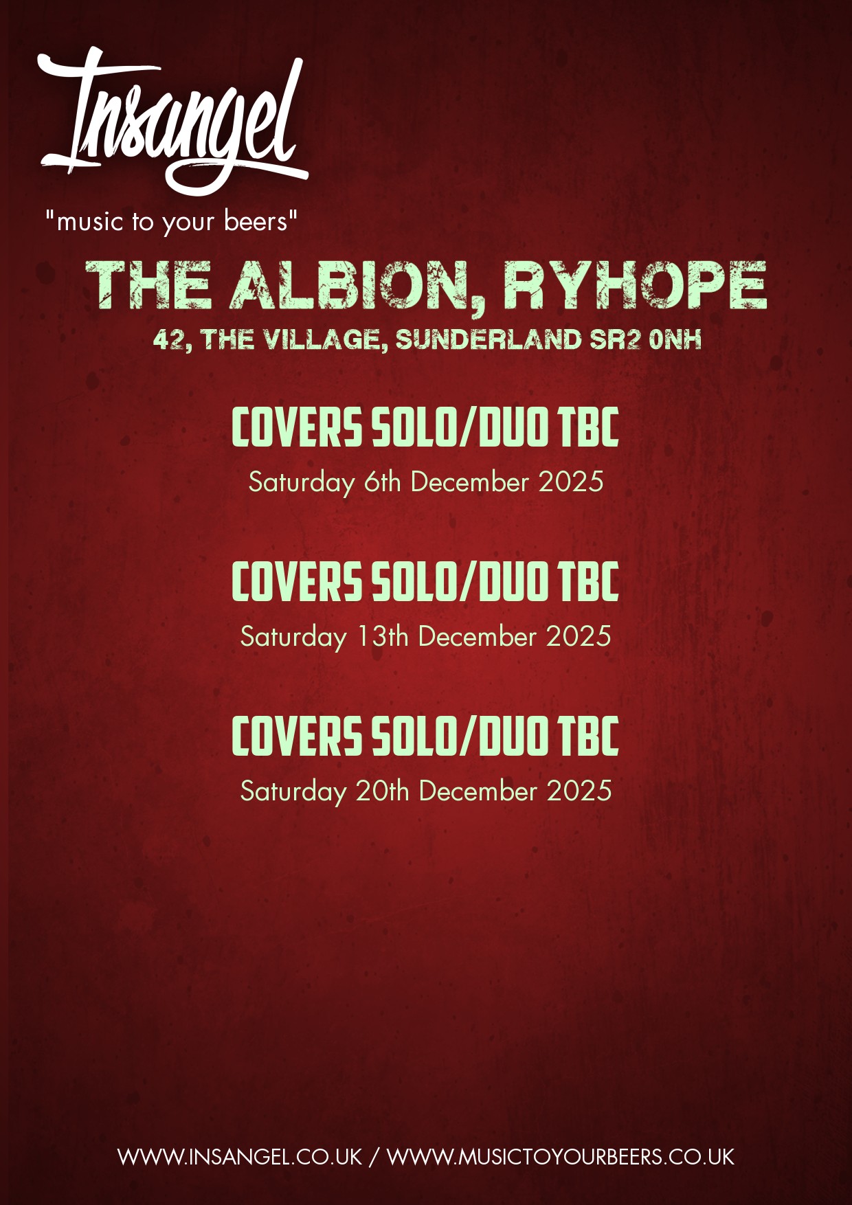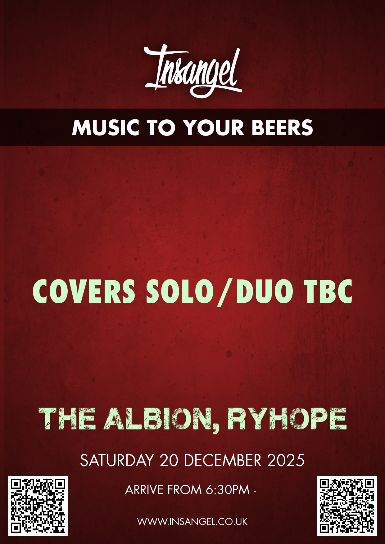 Saturday 20th December 2025 - Covers Solo/Duo TBC [Red Poster] [White Poster]