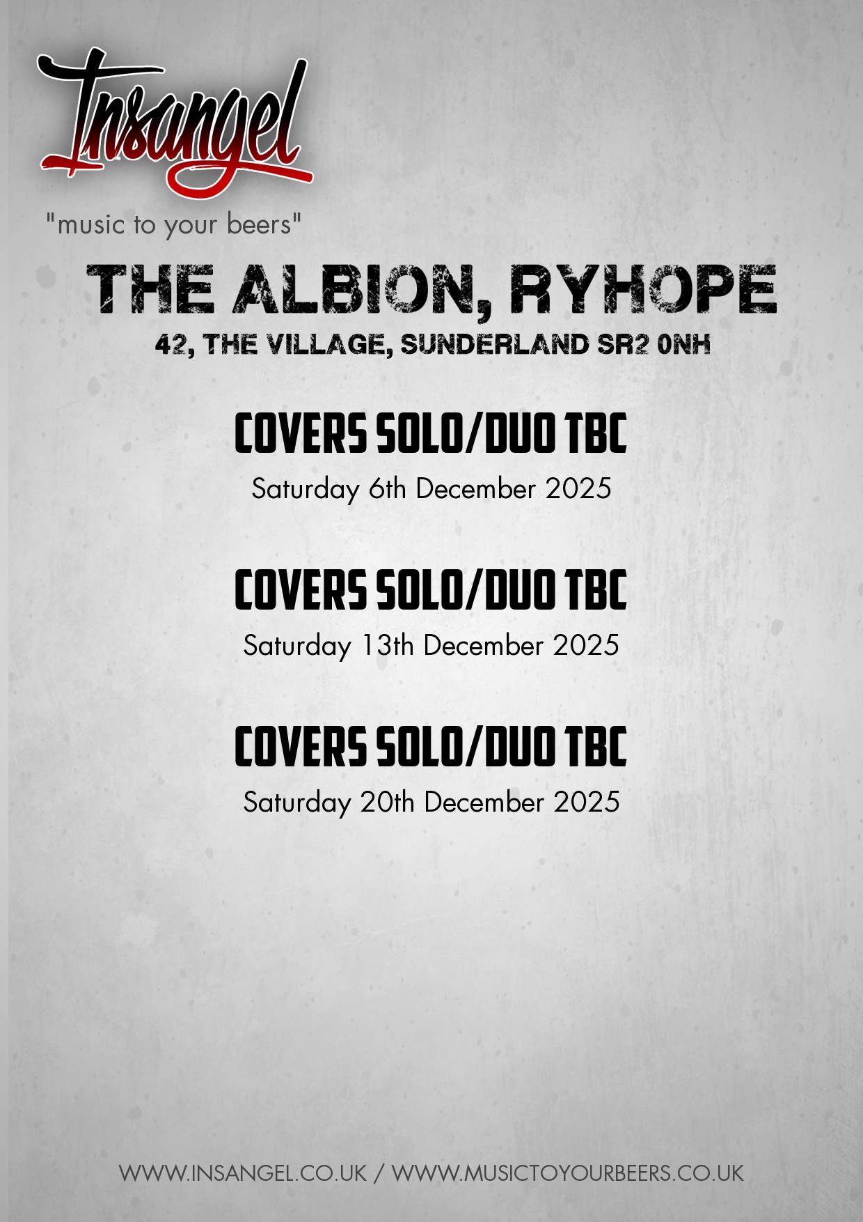 Saturday 6th December 2025 - Covers Solo/Duo TBC [Red Poster] [White Poster]